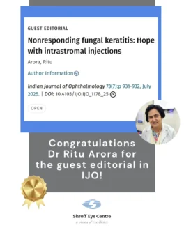 Our cornea specialist Dr Ritu Arora wrote the guest editorial in the Indian Journal of Ophthalmology on Non-responding Fungal Keratitis. Ma'am explains how intrastromal injections offer a safe and effective adjunct to conventional therapy in recalcitrant fungal keratitis.